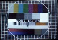 Bis ca. 1990 wurden vor Sendebeginn von den Fernsehanstalten Testbilder gezeigt. Die ARD übertrug fast immer ein Farbtestbild mit dem jeweiligen Namen der Sendeanstalt. ZDF und die dritten Programme übertrugen zusätzlich jeweils zur halben und vollen Stunde für 5 Minuten ein Foto, welches den Senderstandort zeigte.